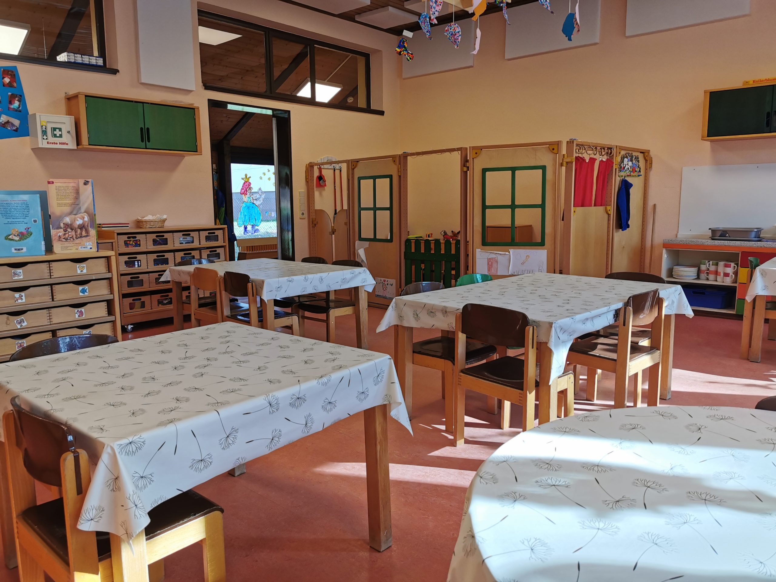 Unser Kindergarten verfügt über 2 große Gruppenräume, in denen die Kinder einen Großteil ihres Alltags bewältigen können. Hier wird gemeinsam gegessen, gespielt und gesungen. Im Stuhlkreis kommen die Kinder hier täglich zusammen, um den Tag gemeinschaftlich zu erleben.